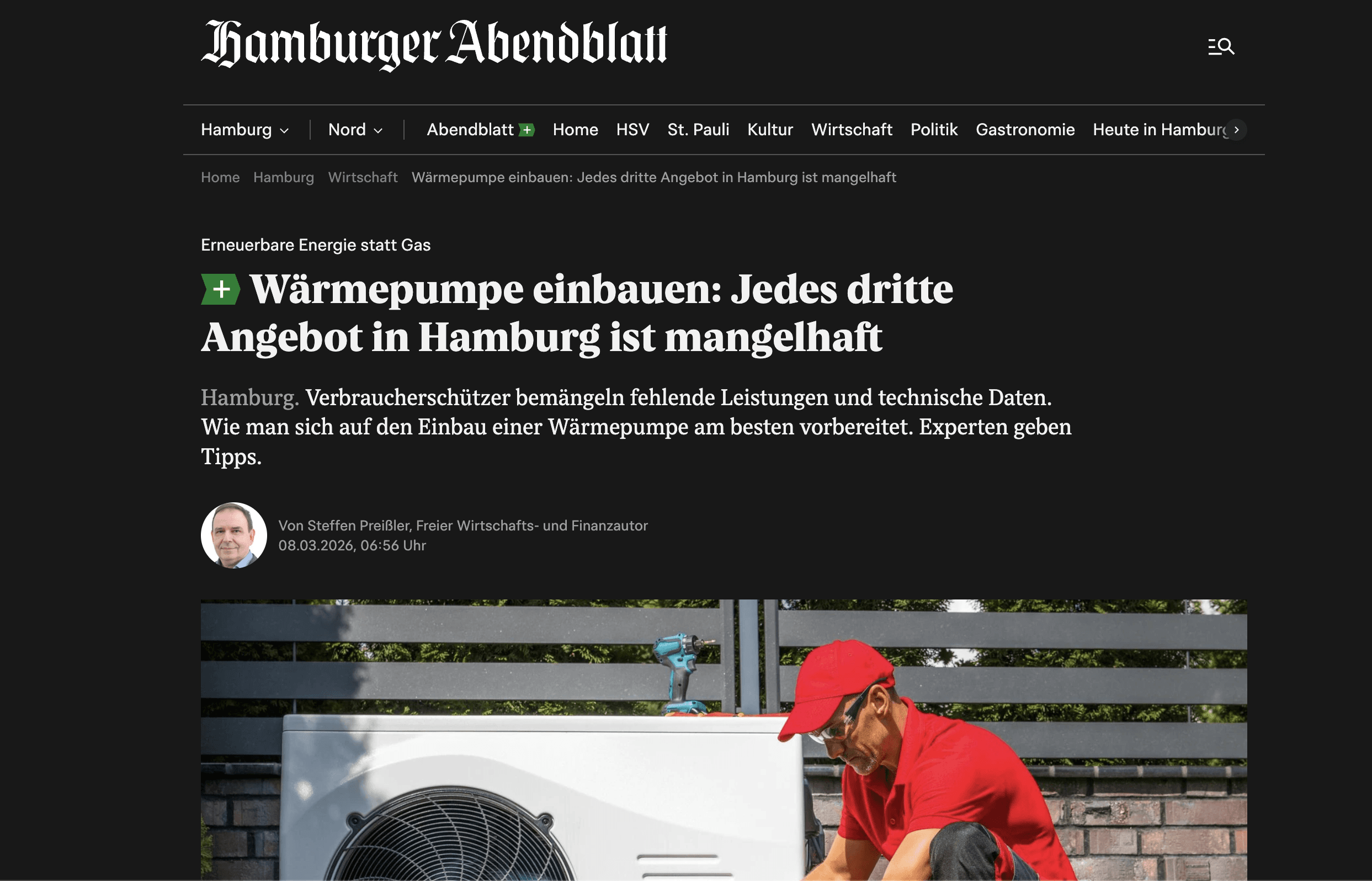 Wärmepumpe einbauen: Jedes dritte Angebot in Hamburg ist mangelhaft