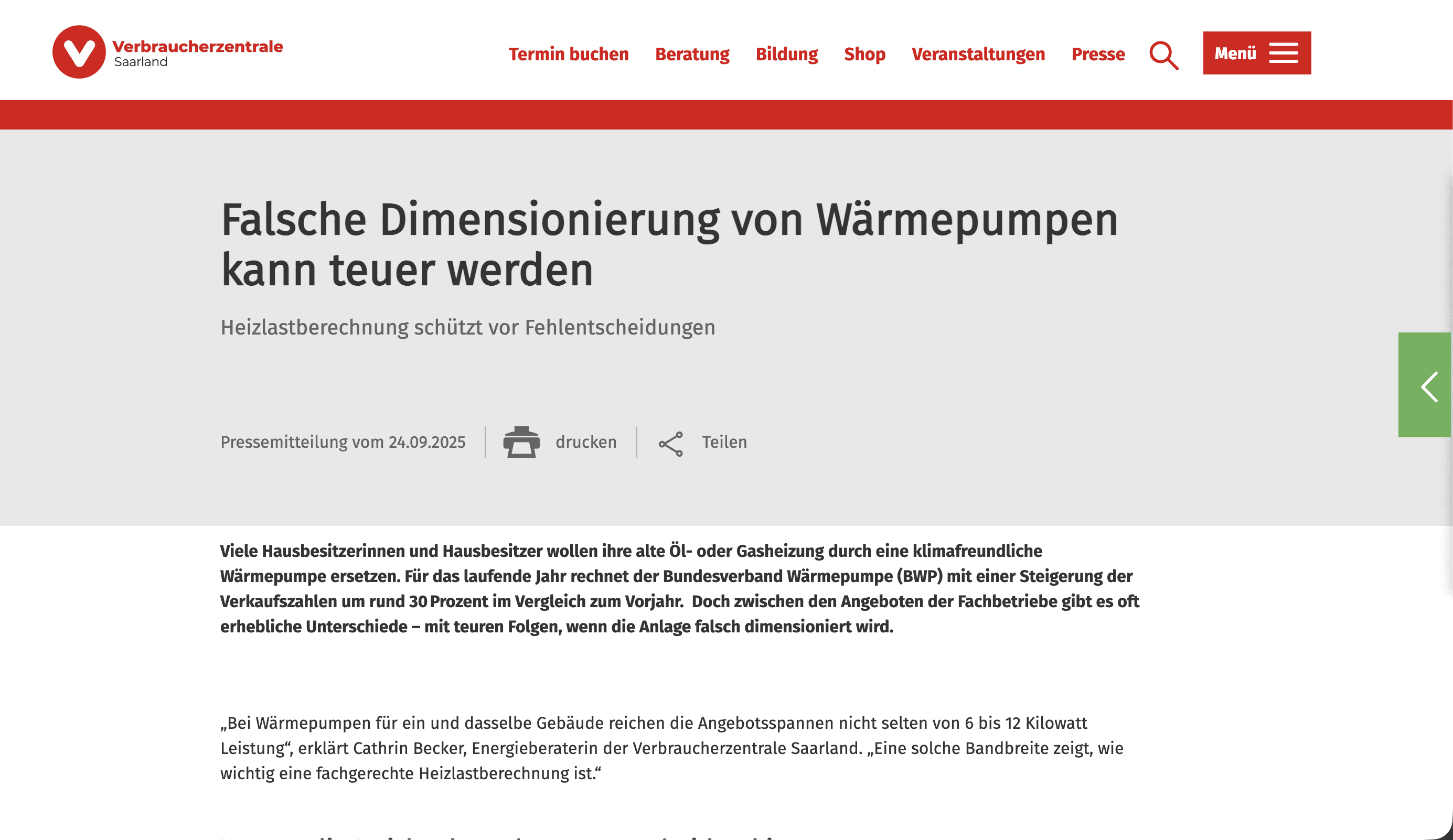 Die Verbraucherzentrale warnt: Ohne genaue Heizlastberechnung drohen höhere Kosten und ineffiziente Anlagen.