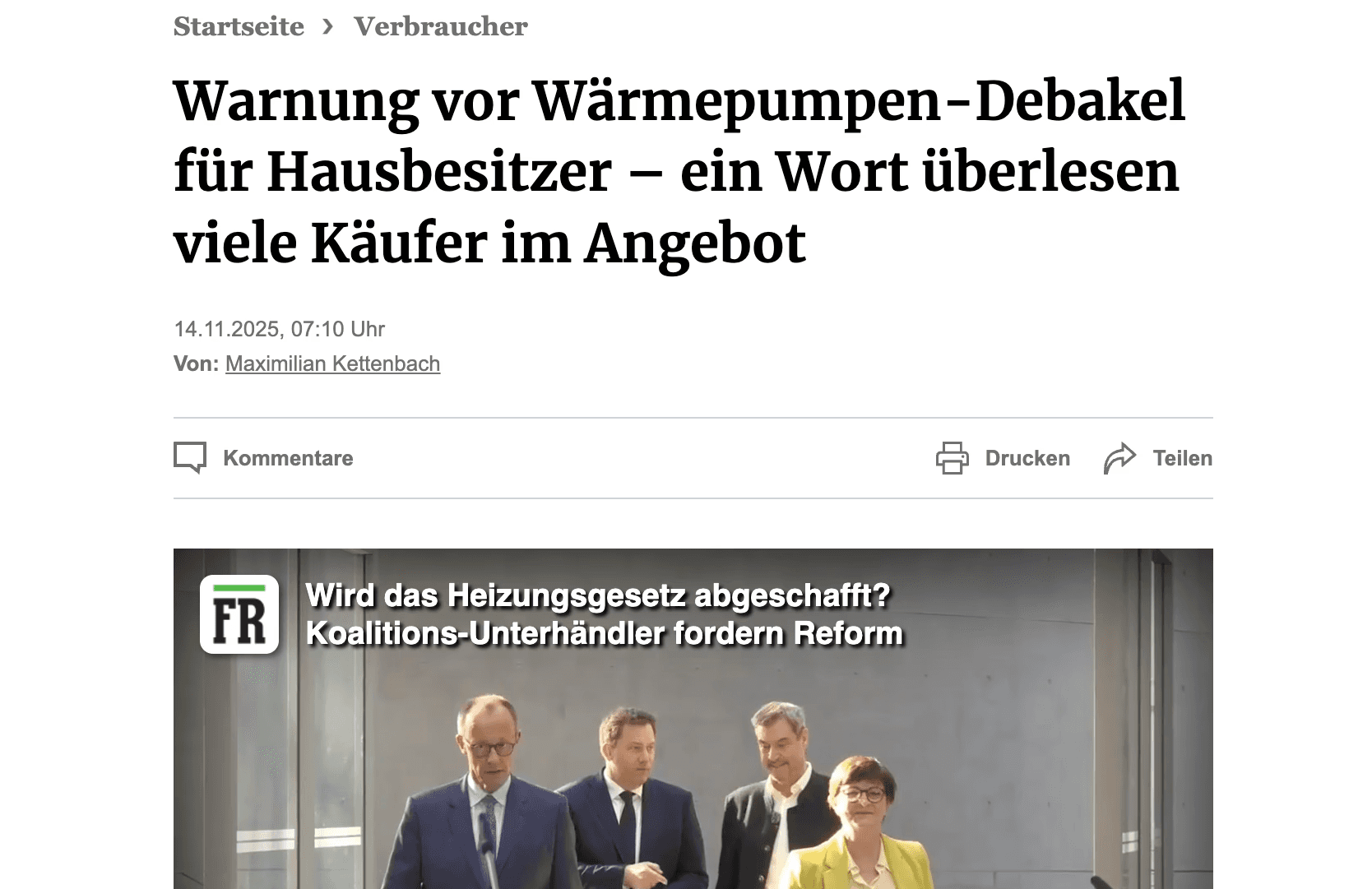 Verbraucherschützer und Medien berichten zunehmend über Fehlplanung, hohe Stromkosten und Installationsprobleme bei Wärmepumpen.